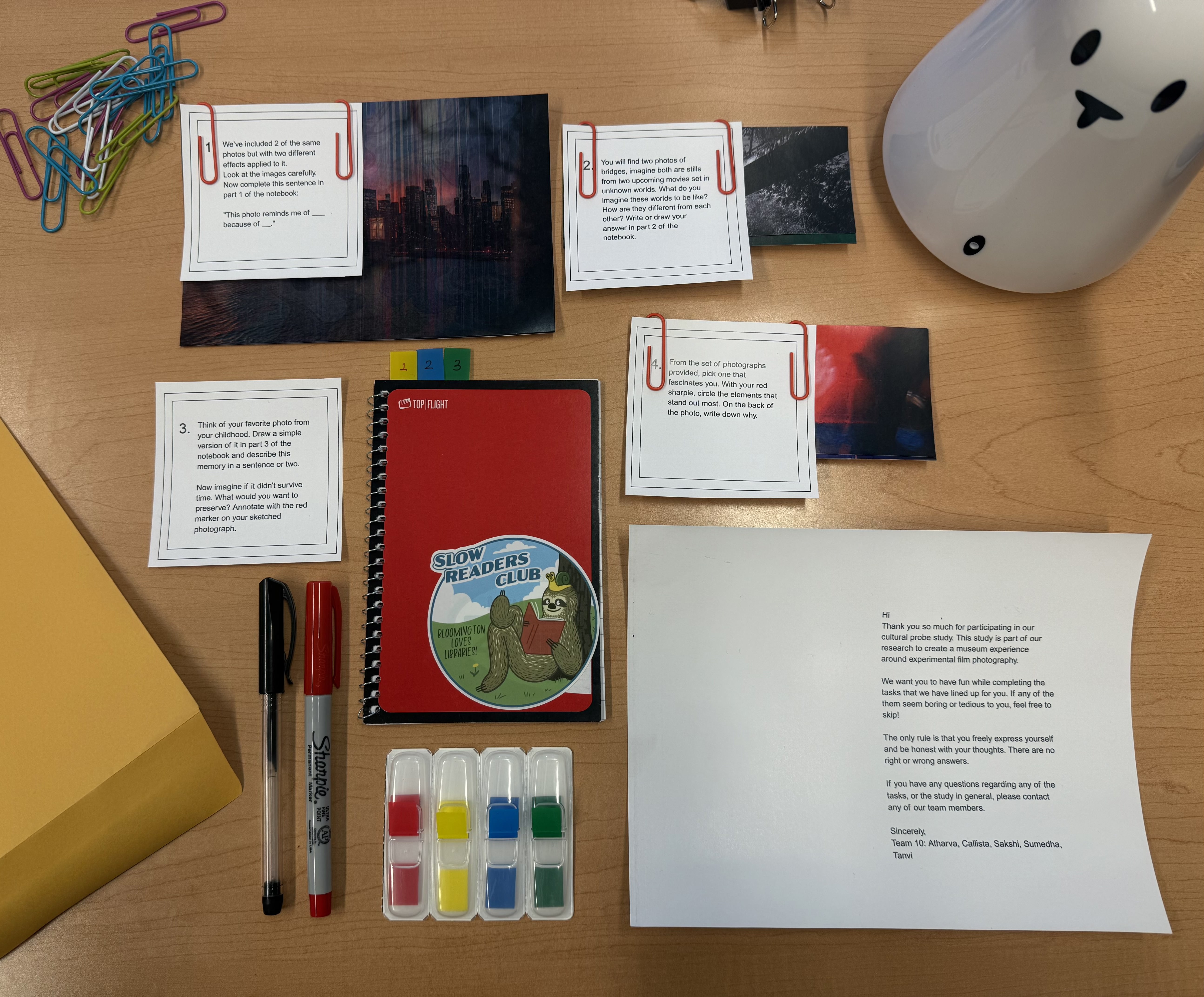 The probe revealed that imagery prompts people to reflect deeply on past and future narratives rather than the present, guiding us to design a slowed, focused exhibition that uses controlled interactions and surprise to foster intimate, personal emotional connections.